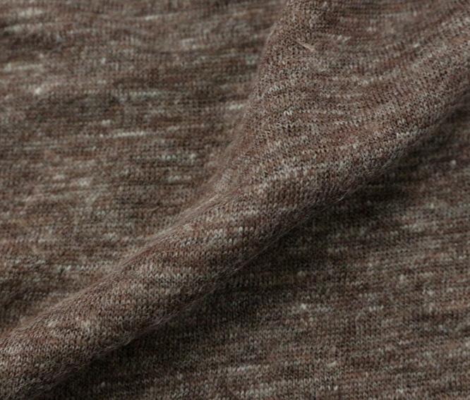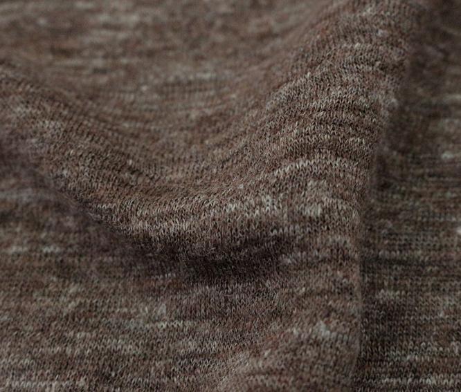 Strikket stof i hørmelangeer et stof af 100 % hør med en meleret jerseykonstruktion. Dette stof er kendt for sit unikke lyngfarvede udseende og giver både åndbarhed og blødhed kombineret med en sofistikeret, stilfuld tekstur. Den jerseystrikkede konstruktion giver fleksibilitet og komfort, hvilket gør det ideelt til fritidstøj, let overtøj og miljøvenlig mode.